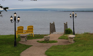 Our waterfront efficiency cabin at Seawinds Motel and Cottages is cute and comfortable and only a five-minute walk to the wharfside restaurants with a view of the fishing fleet. When we arrived yesterday, Father's Day, the majority of the boats were docked but this morning the boats were out again by 6:00 a.m. Digby has a sign in the town square 'The Scallops Capital of the World'. Have a look at the CBC video link below.