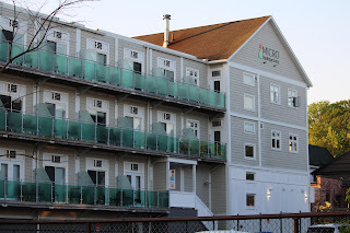 Our unit is in the middle near the stairwayYesterday, when I checked into the Micro Boutique Living condo-hotel in Wolfville, I had a few concerns about the noise level in the building, mostly the noise from the suite above ours. By five in the afternoon, the racket had dropped to a reasonable level, plus I had managed a two-hour nap which helped calm the headache that plagued me yesterday. Despite my misgivings, I had a great sleep and felt almost human the next morning. I spent the day taking it easy, walking Sparky and exploring our cute neighbourhood. And yes, I could live in Wolfville! It is another charming university town, similar to the one in Berea Kentucky, which I visited in May.