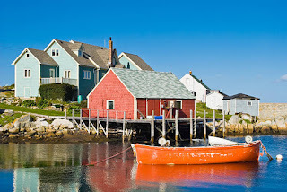 Internet pic of Peggy's CoveBy three in the afternoon, I was standing outside the Marmalade Motel in Port Dufferin, wondering what to do. The door code had supposedly been sent via email that morning but my phone wasn't cooperating. I couldn't access my emails or send a text.