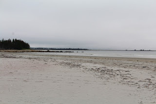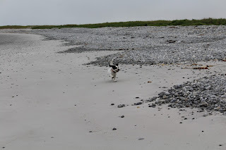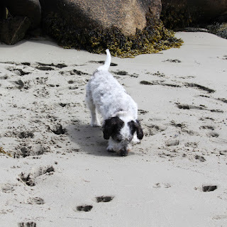 Happy dog investigating the smellsAfter breakfast I decided to investigate the area a bit. We drove a short distance to Roseway Beach, where the Fuzz-butt was in heaven, sniffing and exploring the long white sandy beach.