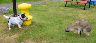 To start the day we headed east toward Cornwall Ontario, then turned off the 401 freeway to enjoy the secondary roads that pass through various communities. Sparky ran into a snarly 'wolf' in Cornwall. I had a good chuckle watching him stand his ground.