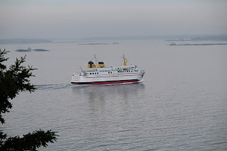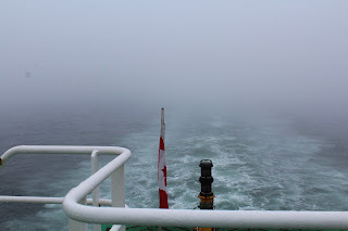 Unfortunately, it was another foggy morning and the ship's captain was required to sound the fog horn at frequent intervals. So, now my pooch is well and truly terrified of travelling on car ferries. He shook and shivered the entire 90-minute crossing. I'll have to drug him for the 7-hour crossing on July 2nd to Newfoundland.