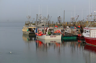 Upstairs in the doggie lounge, a very nice woman (and her elderly dog) gave me an interesting geology and historical recap of the island as we journeyed for 90 minutes from Blacks Harbour through the dense fog to Grand Manan's ferry terminal.