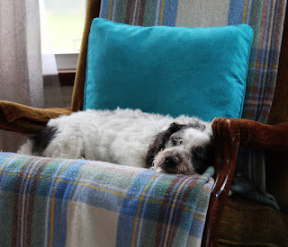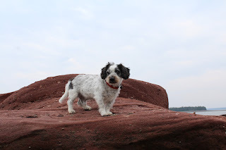 It's raining lightly on Grand Manan but the fog has lifted, and I can finally see the ocean. I am sitting at the kitchen table of my vacation cottage in Seal Cove, near the southern end of the island. Sparky is napping - again. I think I am wearing out my travel buddy.