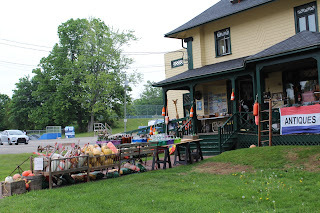 Sparky and the 'wolf.' He was supposed to frighten geeseWe passed through several charming villages in the area between Cornwall Ontario and Granby Quebec. There was a detour for road work in one village, and my French was a bit rusty. Even with Miss Google's help I still made a wrong turn and added another 30 kilometers to my driving distance. Unfortunately, I didn't keep an accurate record of where I took each photo. This is a collage of several locations.