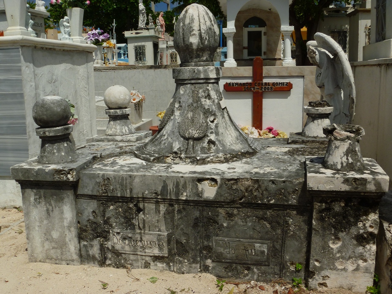 Tomb of Pirate Mundaca on Isla MujeresWell-grounded in fact as is book one in the series, the author, who calls Isla Mujeres home, shares her knowledge of not only 16th century pirate lore but also Mexican and island traditions. Her fly-on-the wall perspective of the cross-cultural juxtaposition of locals interacting with a daily invasion of tourists and expats is honest and telling. And the influx of this mass of humanity to their island paradise must clearly be a distraction for resident locals. Though hundreds of jobs are created by day-tripping tourists, as explained by the author, one hopes that the promise of steady employment can offset what must certainly have upended a previously tranquil lifestyle.