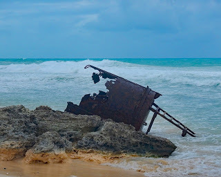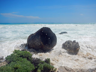 At sundown it was pointed like a missile right at our casa. When we checked again at sunrise, it had bounced over the rocks moving north and stopping on the beach in front of Maravilla Caribe.