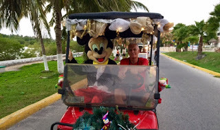Elmo-Freddy and Elmo-LawrieIn 2017 Lawrie and I returned to Canada to celebrate Christmas with his large extended family. He was having health issues and we sensed that this might be his last chance to celebrate a Lock family Christmas. Rob and Julie Goth happily stepped in to become the new Mickey and Minnie for 2017 and for any future parades.Elmo's Christmas Parade is usually the last Saturday before Christmas Eve, but our intrepid leader Freddy Medina sets the date. If you want to join in next year just contact Freddy or me on Facebook. Don’t forget to add battery-powered Christmas lights to your shopping list. Buying them here is very hit-and-miss.