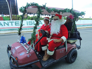2011 Elmo makes his Isla debutJust this week our good friends Freddy Medina and his beautiful wife Yadira Velazquez (Eva) stopped by our little house on Isla Mujeres.Freddy said, "I want to re-name the Christmas parade in honor of my good friend Lawrie.