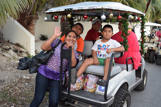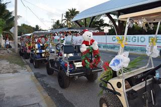 Y luego hubo la caravana del 2016, el sábado 17 de Diciembre, nuestra cuarta caravana anual. Tuvimos camionetas, carros, docenas de carritos de golf, dos moto taxis y algunas motos, pero no había el bus cómico. Parecía que por fin, murió el bus. Teníamos a Elmo, Santa, Sra. Claus, Mickey, Minnie y una Tortuga Ninja. Había por lo menos cuatro o cinco perros incluyendo a nuestro Sparky, vestido por la ocasión paseando en sus carritos decorados. Había docenas de gorros de Santa, decoraciones compradas y decoraciones hechas. Música. Luces. Dulces.