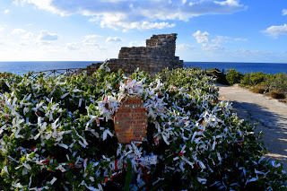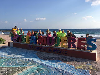 September 2018 - statue gardenThe southern tip of the island is also famous for two more things – it is the highest area in the exceptionally flat State of Quintana Roo, and it has an authentic Mayan ruin probably used as a lighthouse or watchtower structure. The centuries old ruin has survived storms, salt, and water far better than the modern day metal sculptures.