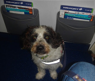 My bed and blanket kept me warmThen we walked inside a big tube-shaped thing stuffed with people. I was a bit nervous for a few minutes, but the WestJet staff made such a fuss over me, telling me how good and brave I was, I pretended it was nothing unusual. Oh sure, I ride in jets all the time.
