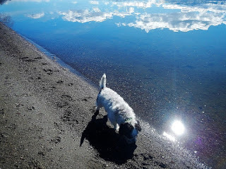 I met many Canadian dogs who loved swimming in the lake. I put the toes of my right paw in the water, then quickly pulled it back. Brrr, they must be nuts! It was freezing cold.