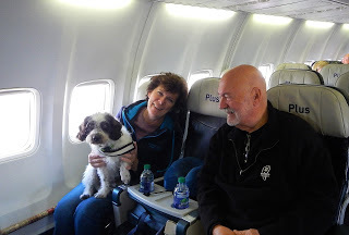 On the big tube stuffed with peopleNext was a ride in a big white van to a large scary place called the Cancun International Airport. I pretended I was an experienced traveler, and not bothered by the crowds and noises. I wasn’t even afraid of the weird little room with the sliding door that moved us to a different area. I think it is called an elevator.Servant had to carry me through the Security area so that the grumpy people in uniform could check my tummy for recent incisions. People have a lot of strange ideas. They should have had the other dogs sniff me and confirm I wasn’t carrying anything illegal in my stomach. As if! Famous dogs like me don’t do bad things like that.