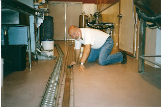 Lawrie limpiando los drenajes en la cerveceríaEventualmente, nos dimos cuenta de que ser dueños de una cervecería fue una experiencia de aprendizaje muy intensa, con muchísimo trabajo físico. Físicamente, movimos, cargamos, y cambiamos de lugar muchas toneladas de grano y botellas y barriles. Nosotros, los 4 socios Lawrie, Richard, Linda y yo, teníamos entre los finales de los cuarentas hasta a mediados de los cincuentas. ¿Qué diablos estábamos pensando? Por fin, nos pusimos inteligentes y vendimos la compañía en 1998 a su dueño actual.