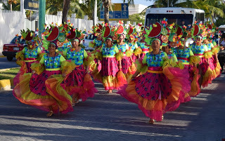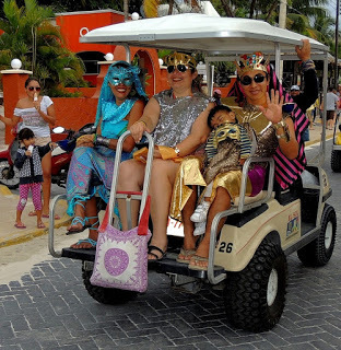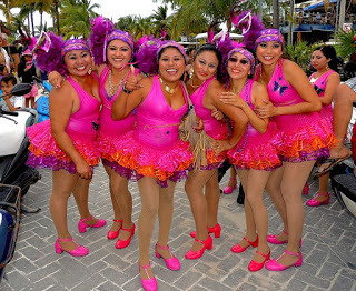 The senior Isla women's group. There’s loud music, and outrageously flamboyant costumes, and laughter for five days.At four in the afternoon on Sunday, the dance groups were scheduled to assemble on the old airport runway across from the Navy base in preparation for the first parade. Of course this being Mexico where everything starts at least two hours later than planned, there were only two groups who were on time – one being a collection of my friends who decided to debut as dancers this year.
