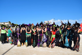 Garnette - the green-faced brujaAt first they shuffled and stumbled over the unfamiliar routines and then they started to enjoy the dancing. They worked the choreography at twenty different daytime and evening rehearsals, so often they all knew the words to the song by heart. Without costumes. With brooms. And then with complete costumes and brooms. On parade day, Sunday February 11th there were twenty-seven witches set to scare the living daylights out of the crowd. They strutted and danced their way along Rueda Medina, from the airport north to Jax Bar & Grill. The audience loved them. Afterwards, the fun and laughter was evident in their many back-and-forth messages reliving the experience.