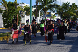 Las Brujas de Isla MujeresTheir ages ranged from mid-thirties to mid-seventies, and they were all born someplace other than Mexico. Las Brujas de Isla Mujeres the Witches of Isla Mujeres are all gringas, foreigners. How did this come about?According to Garnette Hardesty, Betsy Snider started it off by posting a video in September to her Facebook page. (Most of you will know of islanders Betsy Snider and her husband Tony Garcia because of their fabulous photos of life in Mexico.) The video Betsy posted was an amusing rendition of the Wolfshager Hexenbrut Witches Dance. She hinted to Bev Willard and Garnette that it might be a fun idea for this year’s Carnaval parade.