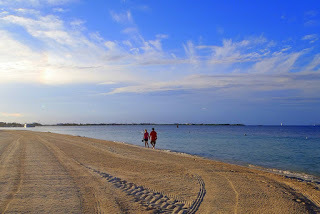 Visitors enjoying the beach before the crowds arrive Go for a walk on the beach while enjoying your morning coffee, smoothie, or whatever other beverage you want to start your day with. While you are out enjoying the early morning calm you might see the beach cleaning crew raking the sand, sifting for discarded cigarette butts and bottle caps, picking up trash and removing potentially dangerous overhead coconuts. If you happen to have an extra bottle of water with you, pass it along. These folks start work at sunrise to make the beaches clean and tidy for the next round of sun-worshipers.