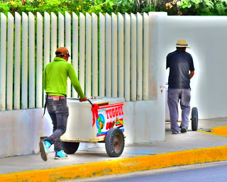 Paleta (popsicles) salesmen heading back after along dayHappy Friday everyone, from paradise.I'm on a tight deadline to get Tormenta Isla Book #3 of the Isla Mujeres Mystery series up and running by tomorrow.