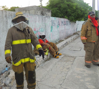 Fire fighters disposing of a nest of angry hornetsHasta Luego, Lynda, Lawrie and Sparky ~