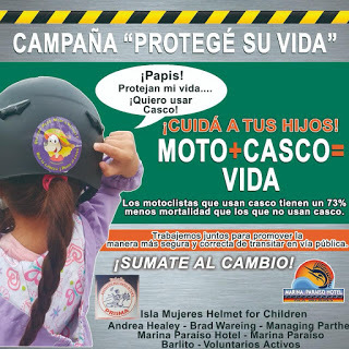 In June of 2014, long-time visitor Andrea Healey and her daughter Danielle Chesney brought much needed medical equipment to Giovanny Avalos for the Red Cross. When they delivered the supplies Andrea asked Giovanny what he saw as the greatest need for the islanders. He replied that it would be his dream to see all youngsters wearing helmets when riding on the family motorcycles.After their vacation was over Andrea and Danielle returned home and gave Giovanni’s idea a lot of thought. They wanted to be culturally sensitive, and not be the bossy foreigners telling people how to live their lives.