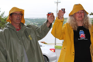 Wearing the traditional Sou'WesterWith a bit of prompting, reminiscent to a minister reciting weddingvows to a bride and groom, John and Judy, gave the proper response, “Yes b’y!”