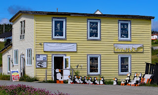 Elliston, gift store specializing in puffin itemsDisappointed, I returned to the car. I had intended to drop Sparky back at our cottage in nearby Little Catalina, but instead turned towards Bonavista. I could always come back the next day on my own.