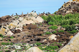 The farthest island is the nesting siteJuly 23rd: At around ten in the morning the fog lifted and we started out on a quest to photograph the cute and comical provincial bird of Newfoundland - the Atlantic Puffin.