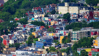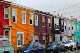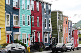 Yesterday was a busy day. We wandered Jelly Bean Row, in St. John's Newfoundland, early in the morning. I snapped dozens of photographs of the colourful houses while Sparky read and answered numerous pee-mails.