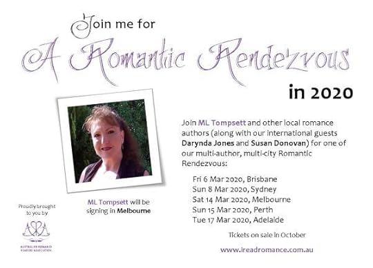 It is not long now until the ARRA — A Romantic Rendezvous, a book-signing event in Melbourne on 14th March, alongside authors like Darynda Jones, Susan Donovan, Tracey Pedersen, Anne Gracie, Michelle Sommers, Keri Arthur just to name a few.
