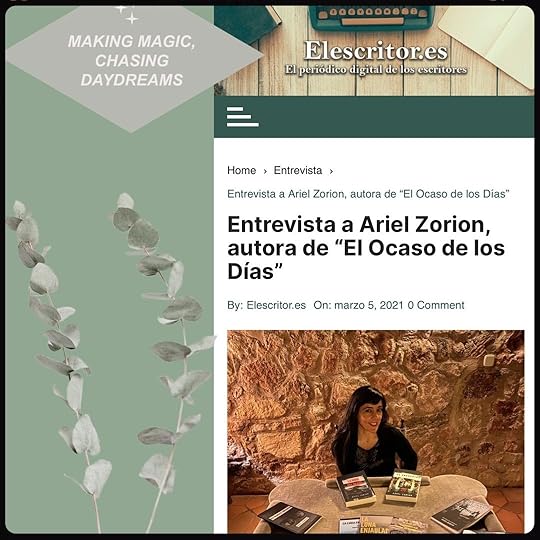 Si te apetece empezar a leer la segunda novela de la trilogía, EL OCASO DE LOS DÍAS, sólo tienes que pinchar AQUÍ para acceder a los capítulos disponibles de forma totalmente gratuita.