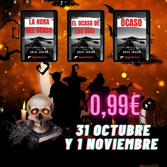 No te puedes perder esta increíble oferta de Halloween. ¡Toda la trilogía Ocaso por menos de 3 €. Son muchas horas de lectura adictiva que ahora están a tu alcance. A lo largo de los tres libros disfrutarás del suspense y la intriga. En esta trilogía nos adentramos de manera profunda en la psicología humana, un ingrediente extra que siempre suma en un libro de este género. Y si todo esto te parece poco, algunos lectores han dicho que es una trilogía muy cinematográfica y que, mientras la leían, les parecía estar viendo un buen capítulo de CSI o de Mentes Criminales. ¿Qué más se puede pedir?