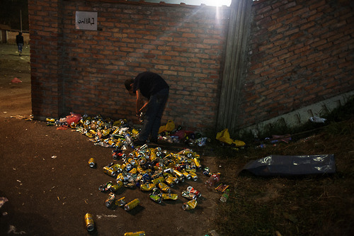 A Roma boy collects cans outside of the stadium at the Guca Music Festival in Guca, Serbia. August, 2010.