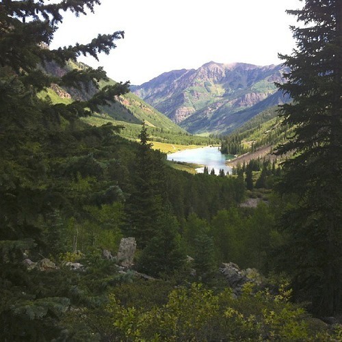 Looking back at Maroon Bells, Aspen, from Echo Lake, in the shadow of the bells. #aspen #maroonbells