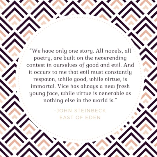 “We have only one story. All novels, all poetry, are built on the neverending contest in ourselves of good and evil. And it occurs to me that evil must constantly respawn, while good, while virtue, is immortal. Vice has always a new fresh young face, while virtue is venerable as nothing else in the world is.”