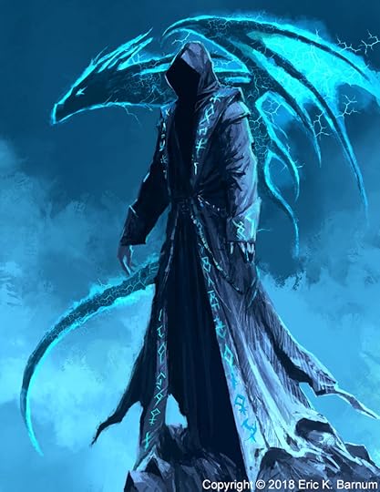 Spark is the fastest of the dragons, moving as actual lightning across the land. Where Alerius shows his human face to any who meet with him, Spark has never shown any features out of the shadowed cowl of his blue robes sizzling with electrical snaps and pops.