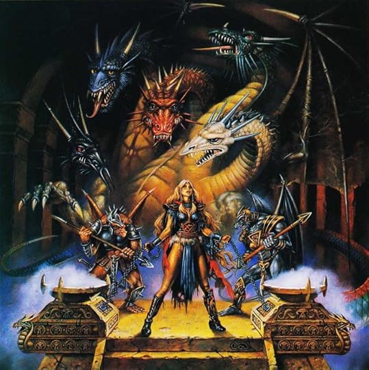 This was my first encounter with Tiamat art. The Dragonlance Chronicles portrayed her as a dark goddess, 1 of 3 moons, and god over dark magic. I remember being in a store and seeing this cover art and, well, things clicked. But, confusion also clicked. A multi-headed dragon would be schizophrenic at best, off-balanced, and with that many dragon heads, how would Tiamat ever make decisions? For a D&D player, it didn’t matter. A single dragon is rough; five dragons is death!