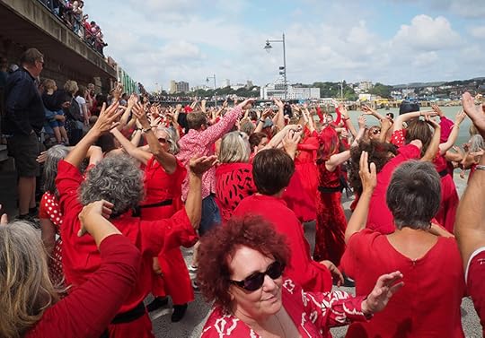 I was part of an audience for a radio show being recorded in London. Oh, and then there was the Wuthering Heights experience. That was at the back end of June, celebrating Kate Bush’s 65th birthday, dancing with about 500 others on Folkestone harbour arm in a red dress to Wuthering Heights. Quite ridiculous, but great fun. And interestingly as we danced and sang our hearts out, we managed to attract a pod of dolphins, I think that’s the right word. They surrounded the harbour arm, I guess they must have thought one of their number must be in distress if they were making that much noise.