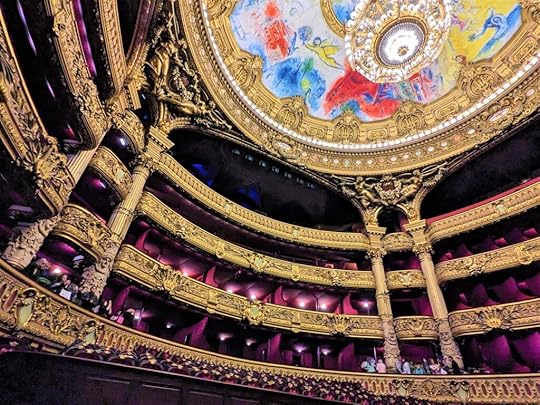 What was lovely was to walk in the footsteps of historian Aurora Black, the heroine of my romantic novel A PARIS FAIRY TALE. I have always wanted to visit the Opera Garnier where Aurora attends a ballet and a champagne reception, and it was wonderful to finally be able to do so, walk up and down the incredible main staircase and sit in the theatre.