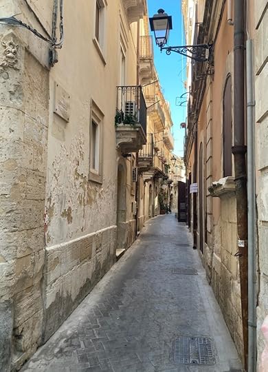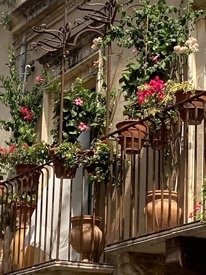 Picking up her suitcase again, she walked along the road on the shady side and turned into a straight, narrow street called Via Nova. Either side were tall town houses with floor-to-ceiling shuttered windows edged with metal balconies housing troughs and terracotta pots of trailing pelargoniums.