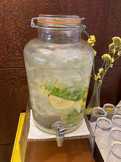 Nearby, she noticed a table with drinking tumblers lined up alongside a glass urn filled with water and slices of lemon, clearly inviting guests to take a drink. She loved the citrus aroma that made the place feel fresh and clean and immediately decided she’d made a good choice.