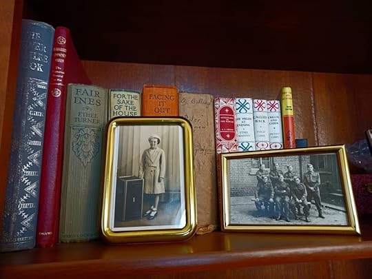 On one of the two bookcases you’ll see several old books that belonged to my mother, along with a picture of her as a young girl, taken by a professional photographer in her Sunday best coat. Alongside that is one of my late father with a group of his army colleagues, during the Second World War.