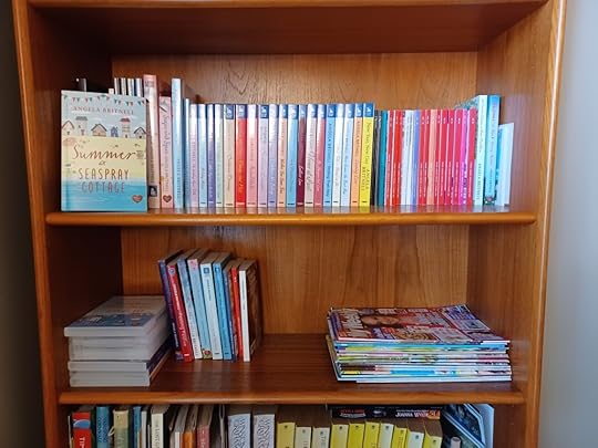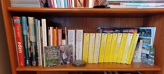 Another shelf shows off all of my Poldark books (I’m a huge fan and old enough to remember the first television series – several of the books are from that vintage), along with other books connected to Cornwall – some bought simply for pleasure and others for research.