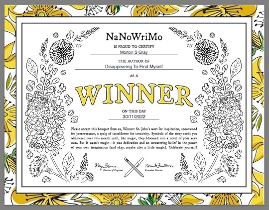 A catch-up blog from me this week. I told readers on 31 October 2022 that I would be taking part in the annual NaNoWriMo writing challenge to write 50,000 words in the month of November. What I didn’t tell you was what a big deal this was for me, because after losing my mom at the beginning of July I’d found it very hard to write anything. I won’t say it was easy this time, but I did it – I wrote over 50,000 words in the thirty days of November! Yipee!