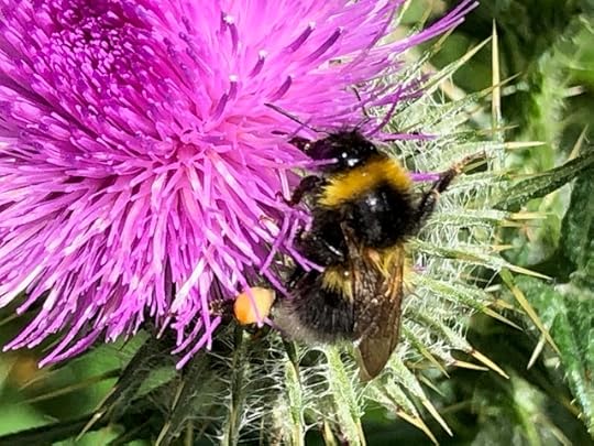 ThistleSo important, isn’t it, and it’s wonderful to see so many more of them around. There’s a big emphasis on encouraging them in Cornwall by leaving verges uncut but the wildflowers were in Truro’s Boscawen Park last summer when the whole planting scheme focused on wildlife and sustainability, including using vegetables in the displays. My husband snapped the bee feeding on a thistle on one of our lockdown walks, so it must have been taken within a few miles of our front door.