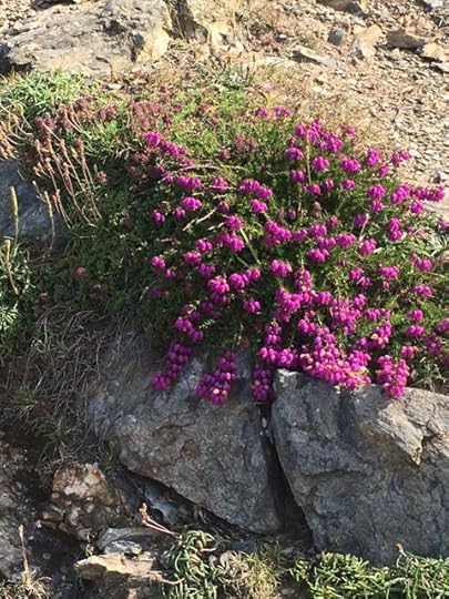 HeatherIncredibly this apple tree is on a footpath along the edge of the Rive Fal between Tresillian and St Clement, one of our favourite walks. The poppies are on another tributary, next to Boscawen Park, below the point where Truro’s three rivers (and Truro means three rivers) meet. The heather was photographed on the cliffs just above the coastal village of Porthtowan, another setting for The Forgotten Maid.