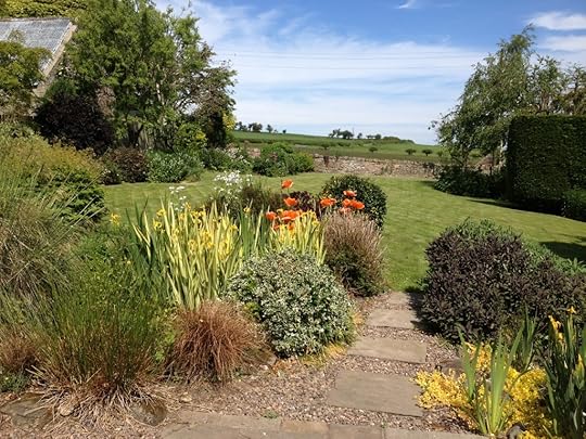 Hello, I’m Caroline Roberts, author of ten novels set in the North East of England, and I’m extremely lucky to have a gorgeous garden that ends in an old stone wall overlooking the beautiful Northumberland countryside. In fact, the inspiration for my last series ‘Rachel’s Pudding Pantry’ is right there on my doorstep, with the sheep grazing in the rolling farmland hills and a barn just ripe for conversion.