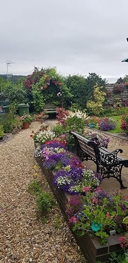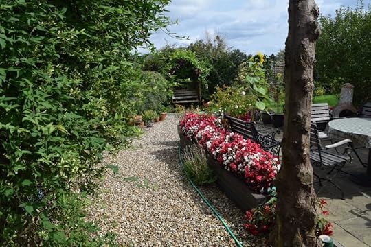 Thank you, Morton, for inviting me onto your blog to talk about our garden. I have a confession to make. It’s all my husband’s handiwork apart from a small contribution from me where each year I fill the raised bed around one of the patios with bedding plants, usually bedding begonias. He is a very keen gardener and it’s been such a pleasure to see the very sparsely planted plot we inherited in 1979 evolve into the mature garden it is today.