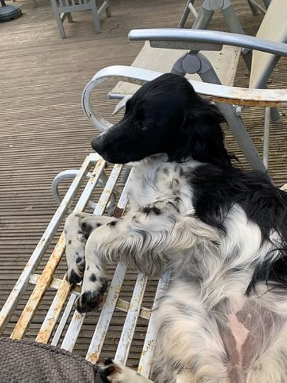 I have a set of swings that my children have grown out of, but they are really good fun to sit and mull over writing ideas, whilst gently swinging back and forth. I often have my writing buddy, Pepper with me. She’s eleven now and loves to sit on my lap. If I don’t let her, because it’s uncomfortable to reach the keyboard, then she simply sits on my back!
